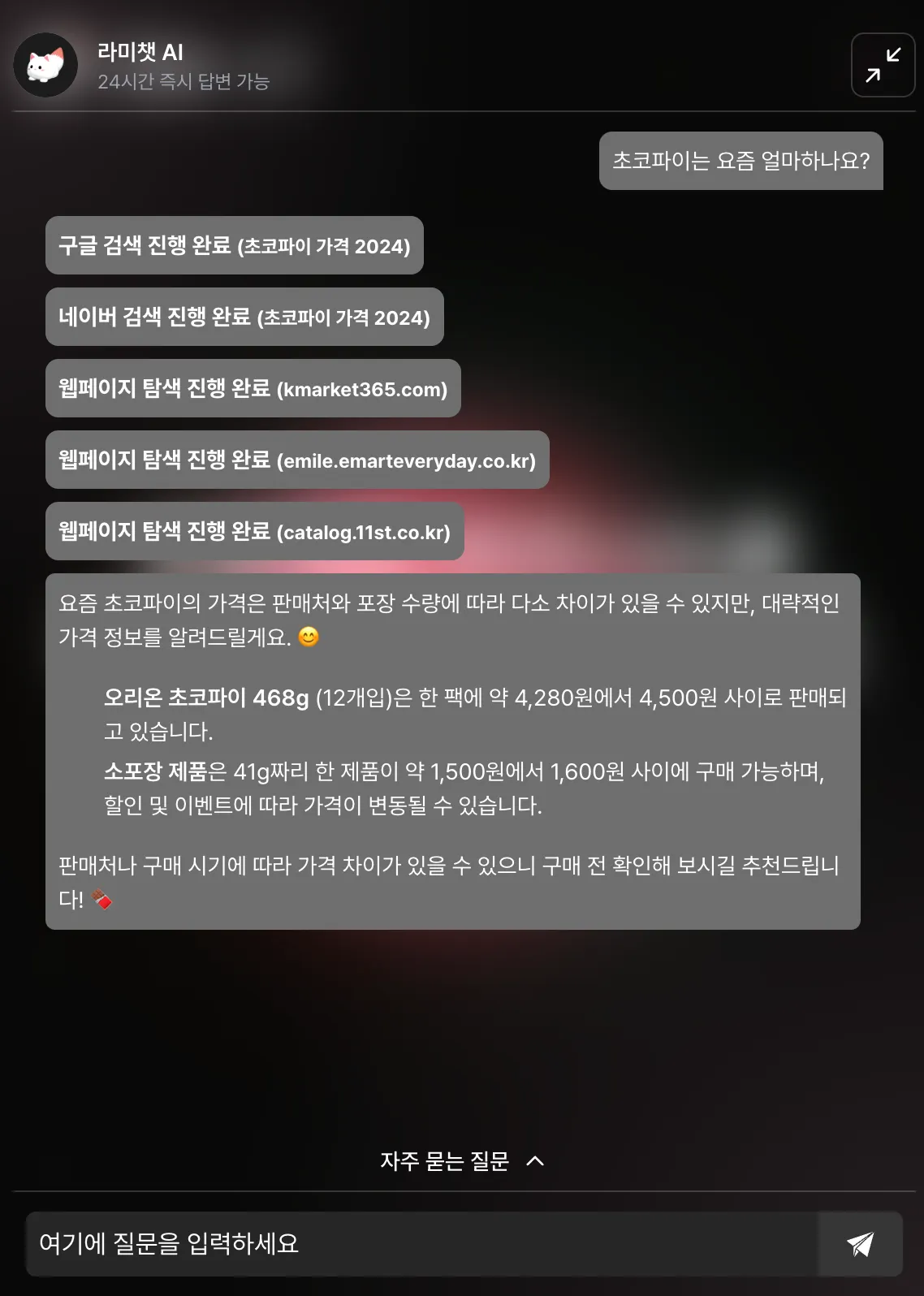더 이상 다른 곳에서 검색할 필요 없이, 라미챗 안에서 바로 원하는 정보를 찾아볼 수 있어요.