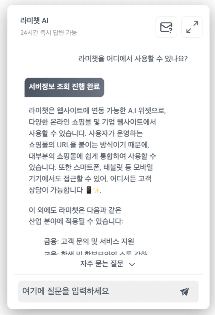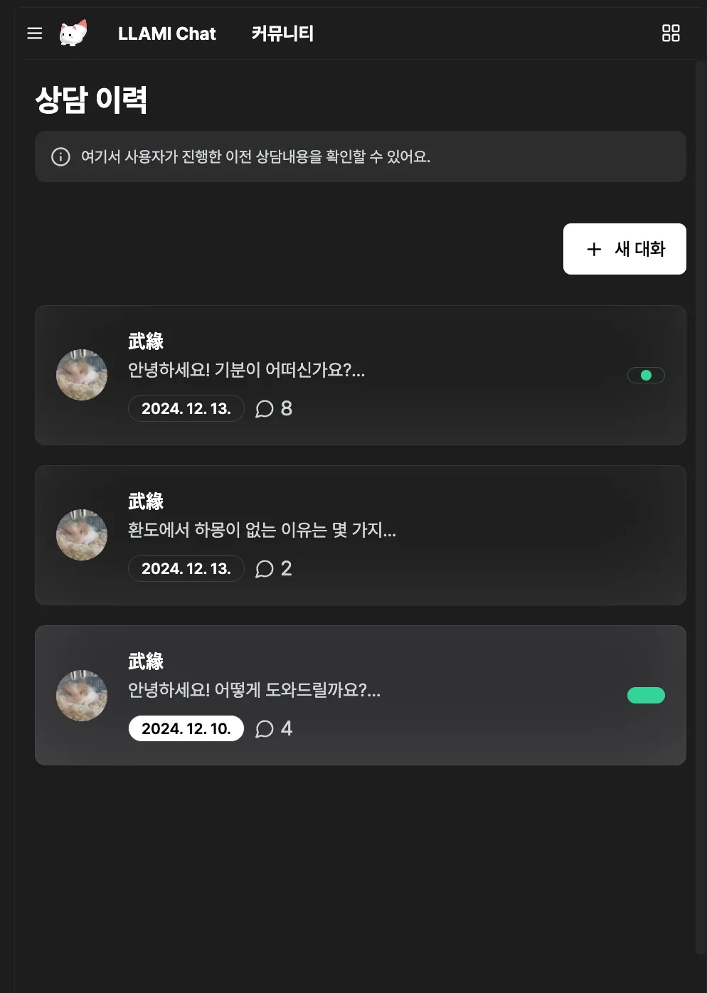 이렇게 유저분들이 남겨주신 소중한 문의는 라미챗 "상담 이력"에서 확인하실 수 있어요