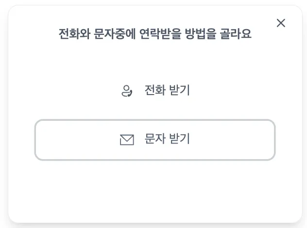 또한 전화번호를 남기신 경우, 전화로 연락을 받을지, 문자로 연락을 받을지를 선택하실 수 있어요!