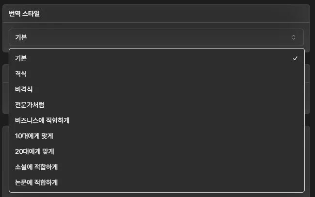 번역 후, 스타일 선택이나 리터칭이 가능해서 원하는 느낌으로 텍스트를 맞춤형으로 바꿀 수 있어요.