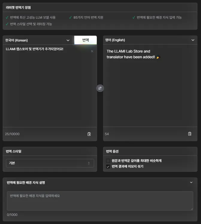 이 모든 기능 덕분에 번역의 정확성과 유연성 모두 챙길 수 있답니다! 여러분도 라미챗 번역기의 새로운 기능을 경험해보세요!